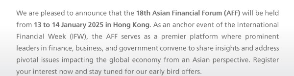 Asian Financial Forum 2025 (13-14 January) - Register Your Interest for Early Bird Notifications |