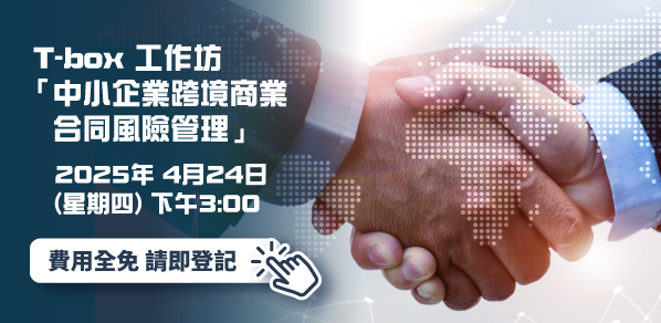 是次T-box 工作坊,我們邀請到一邦國際網上仲調中心的案件管理顧問,為中小企講解最常見的不同爭議解決方法,以及分享網上爭議解決的最新發展。請立即登記參加,了解更多關於跨境商業合同風險管理及解決爭議條款的重點。
