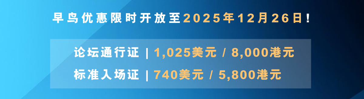 不要错过2026年初亚洲的首要金融盛事!早鸟优惠现已延长至12月26日,立即锁定您的入场证,尊享专属折扣!