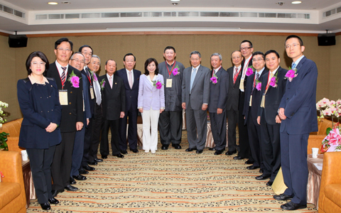 「商合會」主席李大壯(中)與「台港經濟文化合作策進會」董事長林振國(右七)、台灣金融監督管理委員會副主任委員及台港經濟文化合作策進會董事李紀珠(左八),以及其他港方代表團成員合照留念